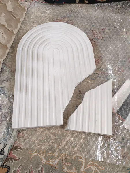 شکسته بود ؛ شکسته تحویلم دادن چون اصلا خشک نشده بوده که پک کردند و من یک هفته منتظر رسیدنش بودم لطفا رسیدگی کنید