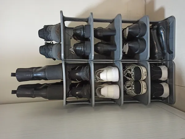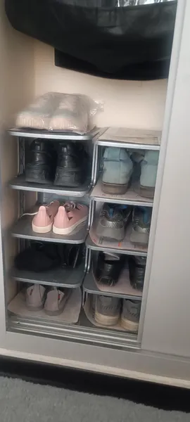 جاکفشی ؛ جنسش خوب و محکمه، ظاهر خوبی هم داره و در کل راضی هستم.کمد کفشها تمیز و مرتب شد. تنها ایرادش ارتفاع کمش هست که باعث میشه کفشای پاشنه دار و ساق دار یا جا نشن یا به سختی جا بشن