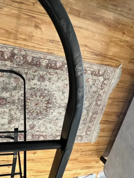 رخت آویز در جاهای مختلف زدگی و قر شدگی داشت. رنگ مشکی آن به لباس پس میدهد! به نظر تقلبی است