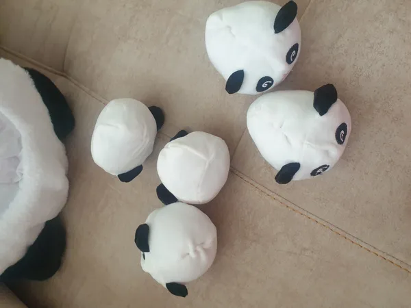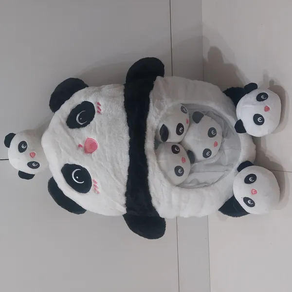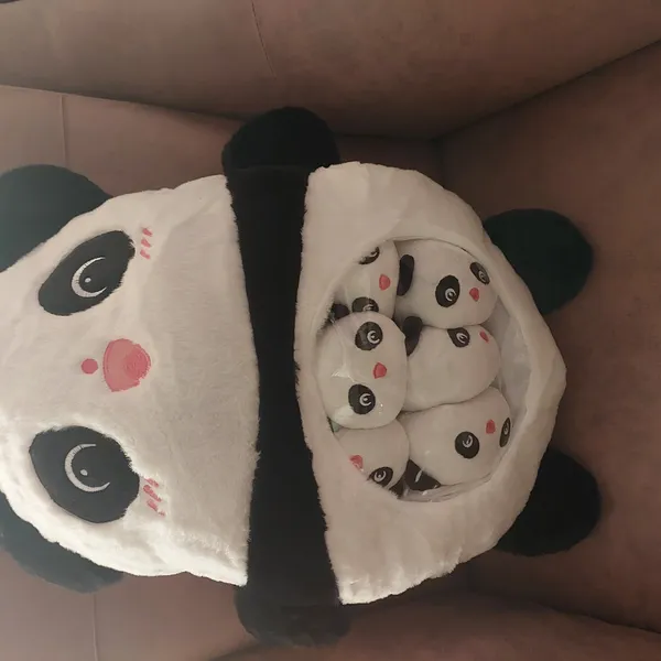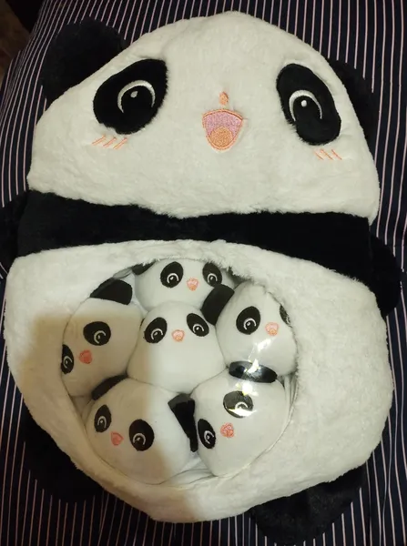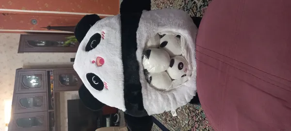 خرید این به اصطلاح عروسک را پیشنهاد نمی کنم ؛ اصلا مشابهه عکس نیست و کلا یک چیز دیگه ارسال شده، عروسک های کوچکتر کج و کوله و سر کله قندی با دوخت بسیار ناشیانه که انگار کسی که دوخت زده به عمد و یا اصلا بلد نبوده، انقدر کوک ها بزرگه که جاهایی از پارچه دوخته نشده و الیاف کار معلومه، دخترم خیلی ناراحت شد. داخل عکس کاملا همچیز گویاست، در حالیکه که من تو مغازه بیرون خیلی تمیز این کار رو دیدم در ضمن بچه پانداها ۵ تا بودن نه ۶ تا، یکیشون کم بود و مثل عکس نبودن، زشت بودن رو لپ هاشون سه تا خط داشت در حالیکه تو عکس و جنس اصلی بچه پانداها خط نداردند، بنظر من این جنس اصلی نیست و کپی بی کیفیت کار داخل عکس می باشد