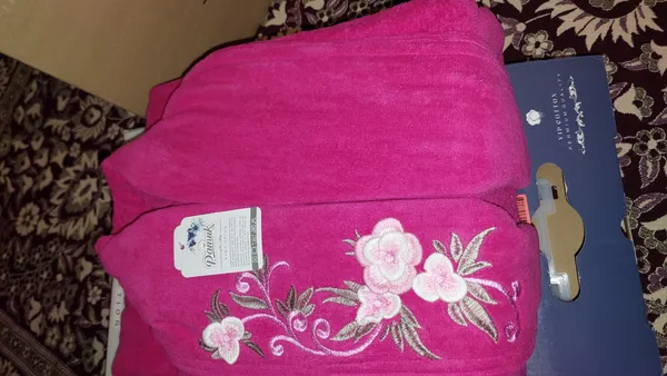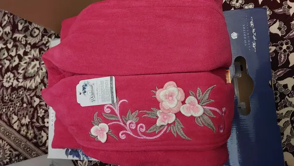 خیلی کیفیت حوله عالی بود. دقیقا مثل عکس هست.بسیار خوشرنگه .گلدوزیش واقعا شیک و تمیزه. برای دختر ۱۳ ساله با قد ۱۵۳ و وزن ۴۹ کیلو خریدم که تقریبا اندازه بود. کلاه و جیب هم داره.بند حوله ازپشت به کمر دوخته شده که این بزرگترین حسنه و نمیزاره دائم بند حوله از بندینکها در بیاد. بسته بندی هم عالی بود.عکس با فلش و بدون فلش میزارم