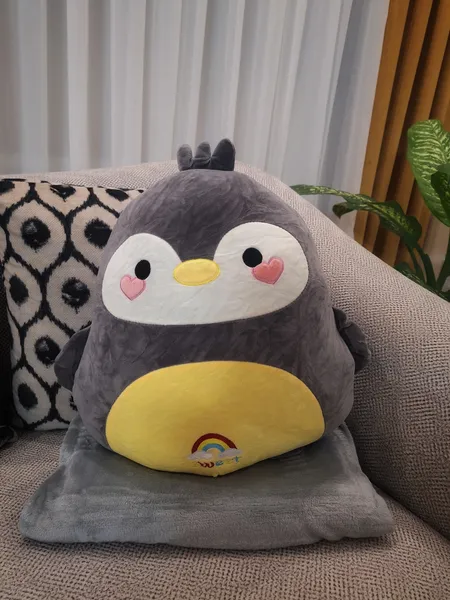 نظرات و تجربه خریداران عروسک طرح پنگوئن بالشتی کد JIMI110 ارتفاع 50 سانتی متر به همراه پتو