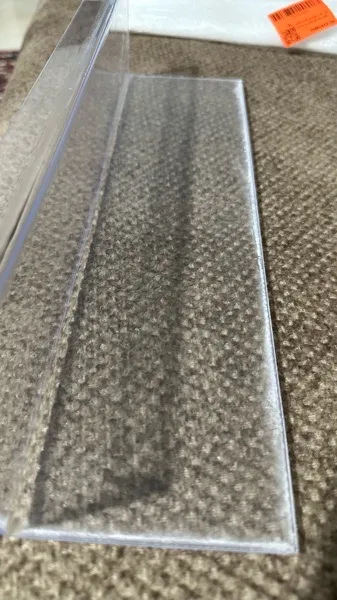 خیلی بسته بندیش عالی بود و هر دو طرفش برچسبای محافظ داشت که باعث شده بود شفاف و بدون هیچ خط و خطوطی برسه دستم دقیقا اندازه ی کشوم بود