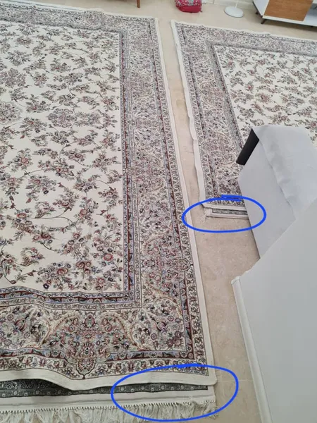 اندازه ش کوچیکه ؛ رنگ و جنس بسیار خوب. ولی همونطور که تو عکس میبینید، کامل روی فرش رو نمیگیره. دو تا ۱۲ متری گرفتم و تصورم این بود که به عنوان رو فرشی، یه ۱۰ سانت اضافه داره تا ۵ سانت از هر طرف بپوشونه فرش رو. اما ۱۵ سانت کم داشت! به علاوه مثلا میشد مثل ملافه، لبه هاش کش باشه تا به فرش فیکس بشه ولی هیچ مکانیزمی برای فیکس شدن رو فرش نداره. من بچه کوچیک دارم و این فیکس نشدن لبه ها برای من مشکل ساز میشه، ولی نه انقدر که مرجوع کنم