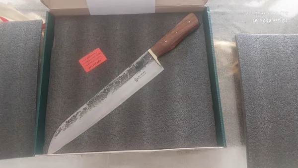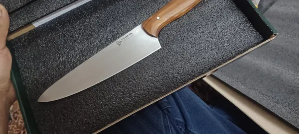 بسیار عالی برای فیله کردن و ساطوری کردن گوشت ؛ باعث افتخاره که هموطن ما در تبریز شاهکار درست کردن.و بنده بعنوان ایرانی ازشون حمایت میکنم تا صنعتشون رونق پیدا کنه. این چاقو برای ساطوری کردن گوشت عالیه و بسیار تیزو خوش دسته.در حقیقت تخصص این چاقو هم همینه.عکس دو مدل رو میزارم که از دیجی.خرید.من چندتا چاقو از دیجی کالا خریدم.اما این بسته بندی شیک و شکیلی داره.عکسشو میزارم تا ملاحظه بفرمایین.اندازه چاقو با دستش ۴۳ سانته ولی توی عکس کامل نیفتاده