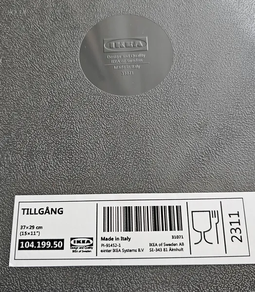 سینی ؛ جنسش مثل پلاستیک و رنگش طوسی تیره است. ایکیا برند معتبریه حتی اگه ساختِ کشور دیگری غیر از سوئد باشه