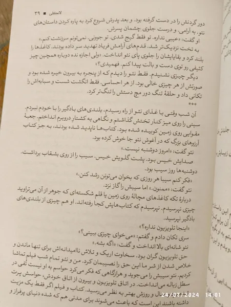 ؛ در کل خرید خوبی بود برام به خاطر تخفیف زیادی که داشت ولی تعداد صفحات کتاب نسبت به انتشارات دیگه مقداری کمتر بود که برای متن ریزش هست البته چشم رو اذیت نمیکنه متنش