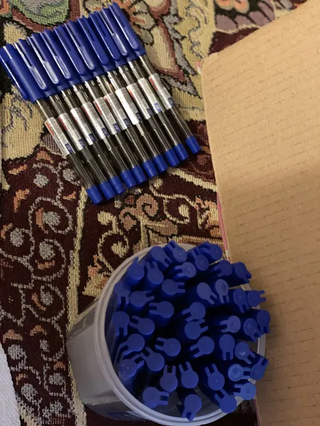 خودکار ؛ چند رنگ سفارش دادم. هرچند ترجیح من این بود که به تعداد مساوی از همه رنگها باشه، من جمله سبز، ولی به نظر بسته کاربردی چیده شده. دقیقا تعداد آبی زیادتر هست، چون احتمالا مصرفش هم بیشتره. رنگ سبز هم اصلا نداشت. به نظرم خوب بود