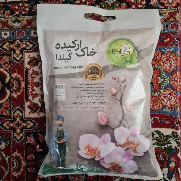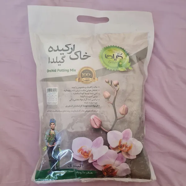 خاک ارکیده گیلدا ؛ چون ارکیده گیاه حساسیه و خاکش با بقیه گیاها فرق داره ترجیح دادم از خاک مخصوص ارکیده استفاده کنم که خوشبختانه گیلدا کارو آسون کرده خاک این گیاهو داره