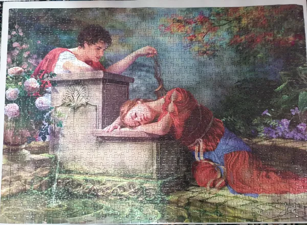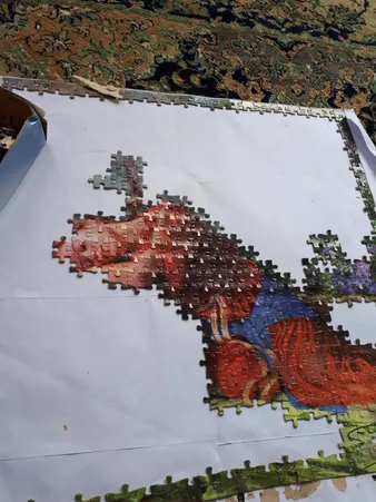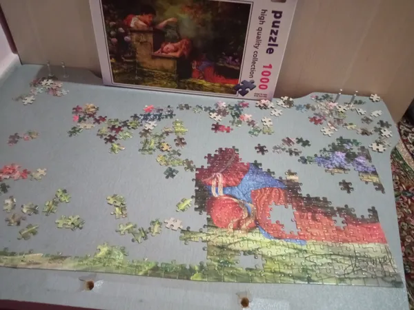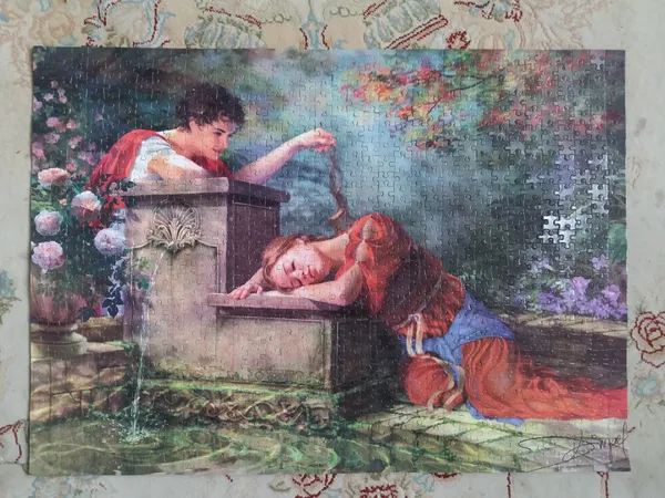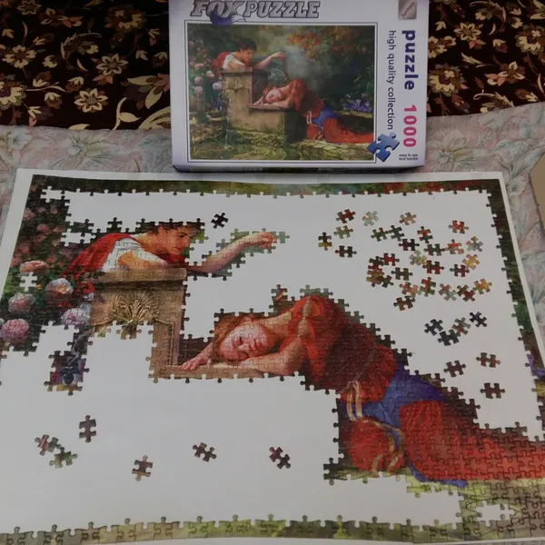 پازل خواب سنگین ؛ این هفدمین پازلی بود که درست میکردم پس در کمال صداقت میگم طرح و رنگ واضحی داشت کیفیت چاپش واقعا خوب بود مثلا قطعاتی که فقط تار موی دختر رو داشتند از وضوح خوبی برخوردار بودند ولی مشکل من با نازکی هر قطعه بود که تو هم رفتن قطعات رو سخت میکرد من هر جایی رو که درست میکردم چسب میزدم تا از هم باز نشود اگر نازک نبودن کاملا راضی میشدم