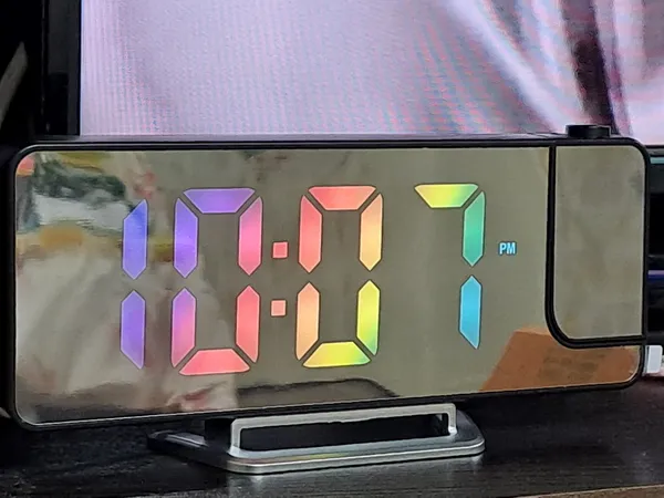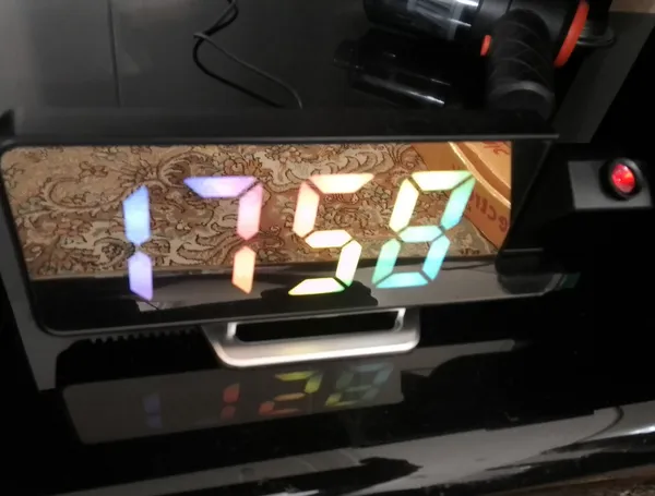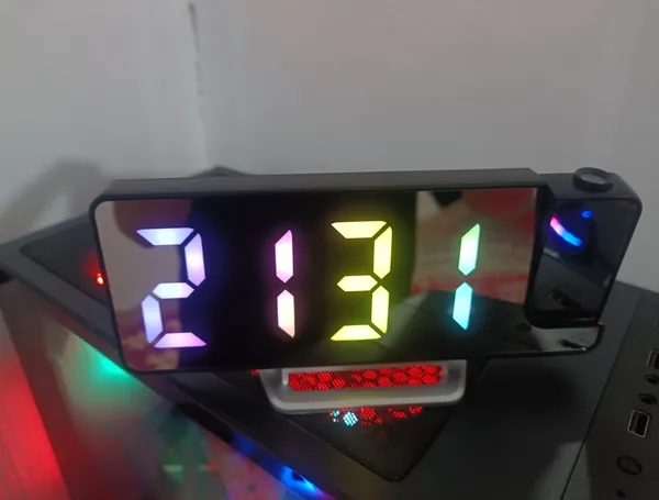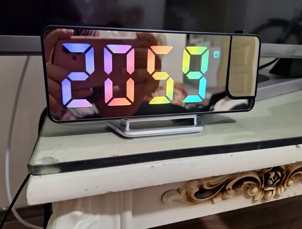 یه جلوه خوبی داره هم ساعت دیجیتالیه هم پروژکتور که هر کدومو جداگؤنه میشه خاموش روشن کرد دیجیتالیش هم تک رنگه ولی تو نور پروژکتورش دید نداره فقط تنظیماتش یه خورده سخته با ترجمه گوگل تونستم از یه چیزایی سر دربیارم😁