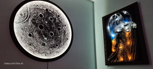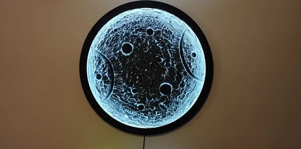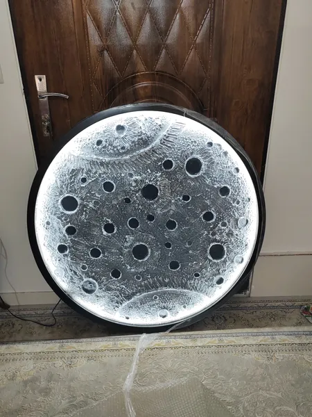 بسیار عالی با کیفیت و بازتاب تورش روی پس زمینه قشنگ آن را ماه را در حالت سه بعدی نمایش می دهد متریال به کار رفته درونش هم خیلی خوبه ولی خیلی خیلی کم اگر بخواهید با پارچه ای تمیزش کنید ریزش دارد ولی در کل ازش خیلی راضی ام و زیباست