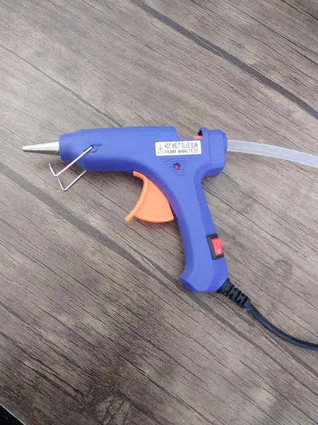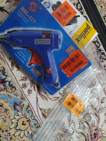 چسب تفنگی ؛ چسب خوب و خوشکلیه خیلی کوچیک و کاربردیه دکمه روشن و خاموشش خیلی کاربردیه و یه پایه برای بهتر وایستادن داره توصیه میکنم