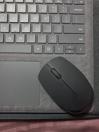 موس بیسیم ؛ موس بی سیم سبک و خوش دستی هست، چندان بزرگ نیست، روان و خوبه، از دو دستگاه همزمان میشه استفاده کرد، همراه باطری ، طراحی شیک و جنس بدنه عالی، کلیدهای اصلی تقریبا بیصدا هستن و نزدیک گوش بزاری صدای کمی میدن، اسکرول موس صدای کلیک میده