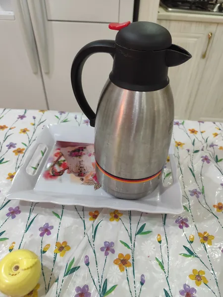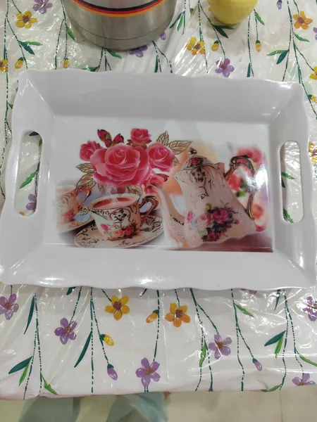 اندازه ش خیلی خوبه سفید براقه طرحش خیلی قشنگه من برای روی میز آشپزخانه که فلاسک بزارم گاهی بچه ها چای میریزن بزارن توش خریدم برای من خیلی کاررایی داره