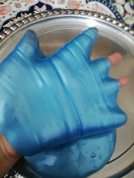 خوبه مثل آبه ولی اصلا به دست نمی چسبه ولی بعد چند وقت سفت میشه و به دست میچسبه . اگه اینطوری شد آب و مایع دست شویی و خوشبوکننده بزنین درست میشه ولی آخرش بعد ۵یا۶ماه خراب میشه. اگه به دست بچسبه از اون محلول جادویی بزنین درست بشه . راهمناش هم حتما حتما بخونین خیلی خوبه اون بزرگ اول اندازه ی اولشه و اون یکی کوچولو بعد از تقریبا۵ یا ۶ ماه بعده باهاش بازی کردم. ارزش خرید رو داره و به قیمتش می ارزه