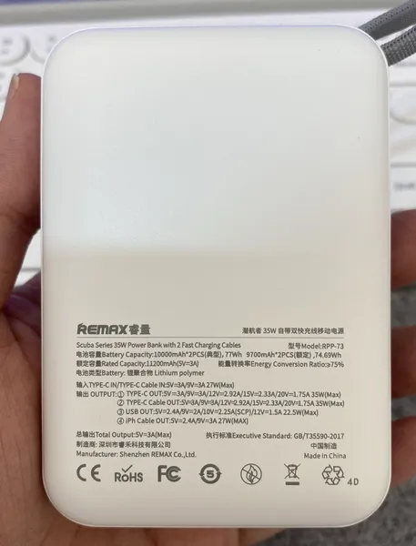 مزایای این پاوربانک: ✅ با ظرفیت 20,000 mAh دارای وزن و سایز مناسبی هست و در کف دست جا می شه. پاوربانک های مشابه معمولا بزرگتر و سنگین تر هستند ✅ نمایشگر درصد باقی مانده باتری داره. طراحی نمایشگر هم خیلی زیبا و خاص هست. ✅ دو تا کابل همراه type-c و lightning اپل داره و نیازی به همراه بردن کابل نیست. از یکی از کابل ها می شه به عنوان آویز و بند هم استفاده کرد ✅ خروجی type-c توان 35W می ده که مک بوک رو شارژ کرد. توان خروجی lightning اش 27W و توان usb اش 22.5W هست. ✅ تکنولوژی Power Delevery با تنوع ولتاژ خروجی مختلفی داره (عکسش رو گذاشتم) ✅ کیفیت ساخت خیلی خیلی خوب و رنگ بندی های خاصی مثل آبی و بنفش هم داره ✅ تعداد درگاه خروجی اش ۴ تا هست که ۲ تاش کابل های type-c و lightning اپل هستن و یک type-c دیگه هم داره و یه usb معمولی هم داره. ✅ درگاه و کابل type-c ورودی ها هستن (یعنی ۲ تا ورودی داره) و با توان 27W شارژ می شه. در کل پاوربانک با ظرفیت بالا، اندازه مناسب و خیلی شیکی هست