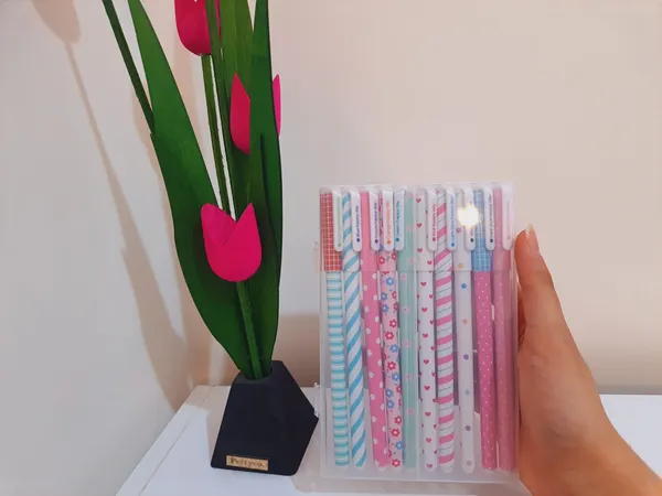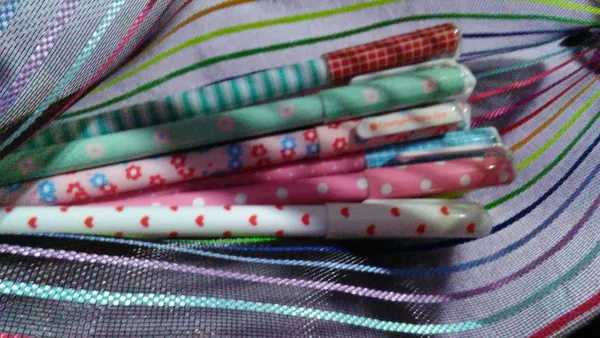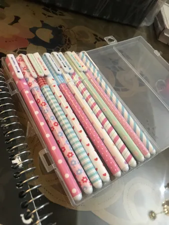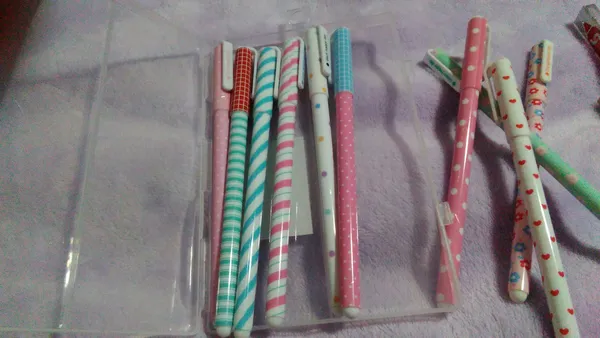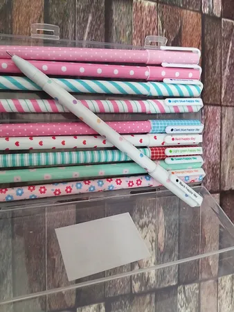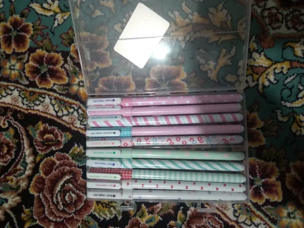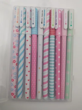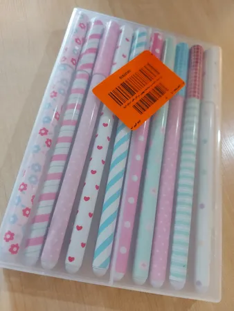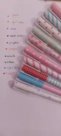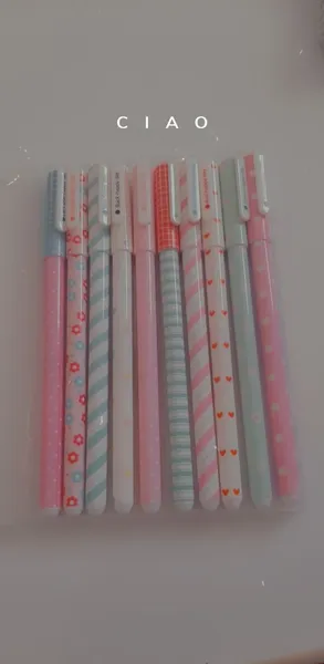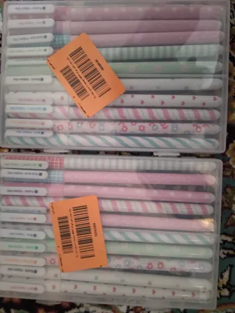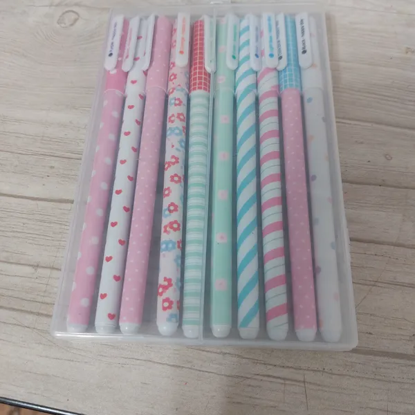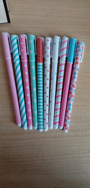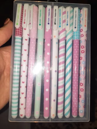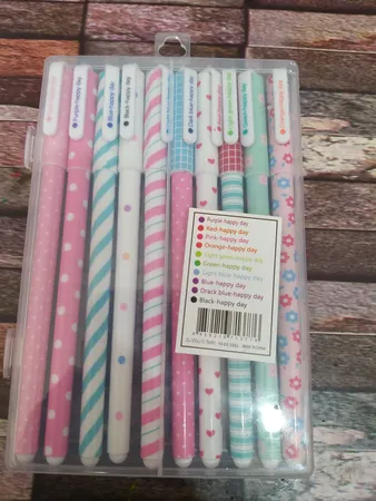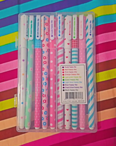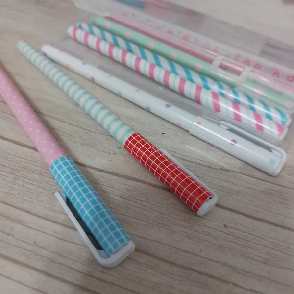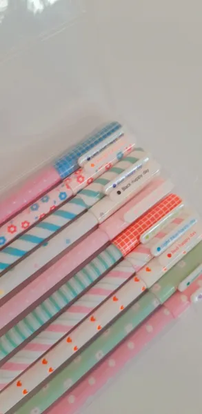 بدنه روان نویس ها خیلی زیبا و مورد توجه نوجوونهاست. اما کیفیت چندان چشمگیری نداره، رنگهای قلمها بهم نزدیک هست، سه جور آبی، دو جور سبز، طیف صورتی سه تا، مشکی و نارنجی. میتونست تنوع رنگی قلمها بیشتر باشه