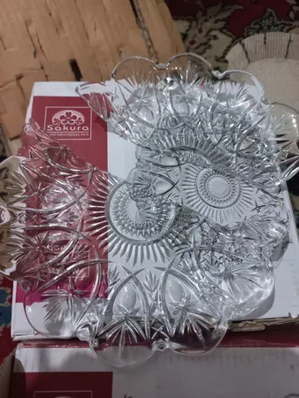 خوشگلن کاملا شفاف وزن مناسب سه دست خریدم راضیم عکس میزارم بشقاب کناری این ستها که مربع هستند کریستال تولید ژاپن است میتوانید با هم مقایسه کنید