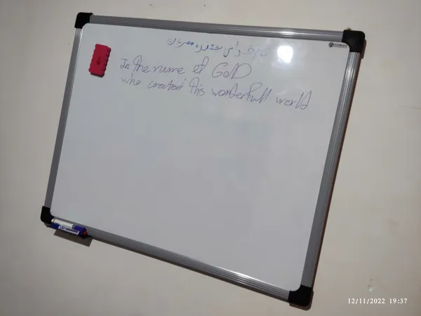 تخته وایت برد سایز 80 در 100 ؛ قابل توجه عزیزان که نگران مغناطیسی بودن این تخته هستن کاملا پاک کن میچسبه و میمونه و مشکلی درش ندیدم، جنس خوبی داره نسبت به پولی که میدین، من برای تدریس خصوصی گرفت سایزش مناسبه اونقدر که فکر میکردم کوچیک نیست و خیلی مناسبه برام،فقط بالای تخته یه مقدار توورفتگی داره و تاب داره(عکسشو میزارم) که احتمال میدم بارخورده ولی زیاد معلوم نیست، ماژیک مرغوب بخرین استفاده کنید اگه ماژیک جنسش بد باشه سخت تر پاک میشه و فکر می کنید جنس تخته بده اما خب خیلی ماژیک تاثیر میزاره، درکل پیشنهاد میکنم و بگم که اندازه پولی که میدین توقع داشته باشین فک میکنم ازاین مدل همه یه تو رفتگی کوچیکی دارن طبق نظرات خلاصه منک راضییم