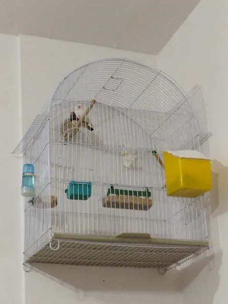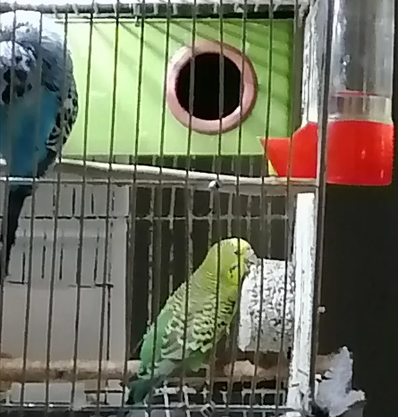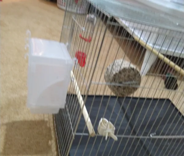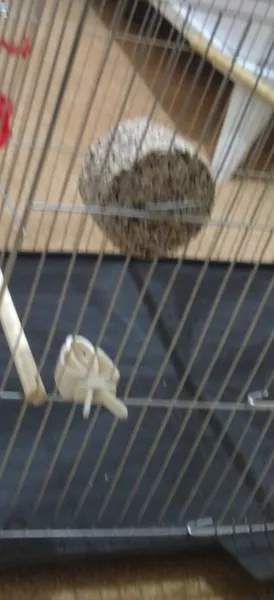 اولش که تو قفس بالای جادونیش بود که ریخت بریزه تو جا دونی ولی کاری بهش نداشت بعد گذاشتم کنار چوبش که با نوکش بازی می کرد باهاش بعدا همینطوری کف قفسش بود