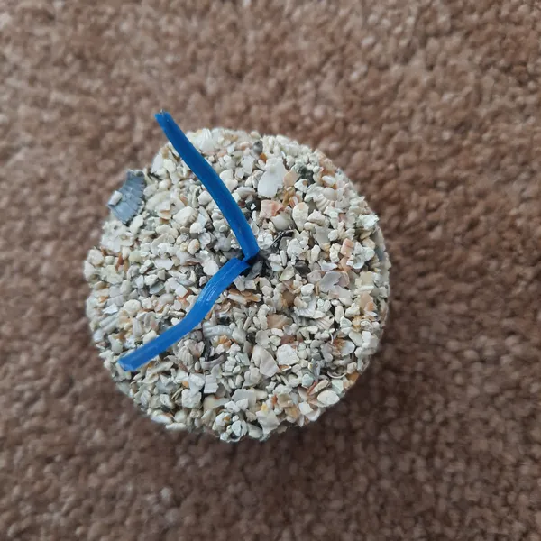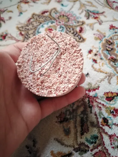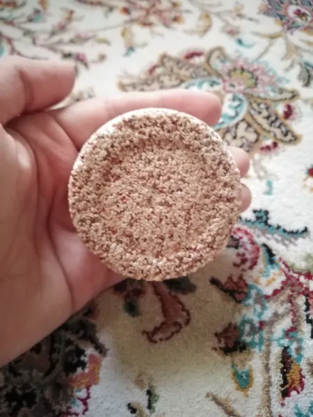 سنگ معدنی ؛ گیره نگهدارنده سنگ مناسب نیست(تو عکس مشخصه) باید فلز میبود، با دست کشیدن به سنگ تیکه های آن جدا میشود(نمیدونم خوبه یا نه)،موادش سنگ و صدف و گوشی ماهیه