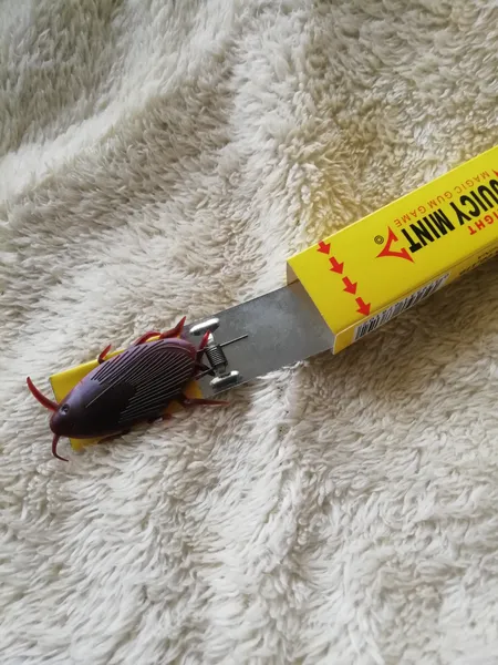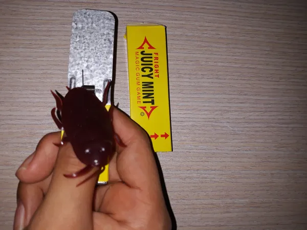 آدامس سوسکی ؛ خیلی چندش ترسناکه ولی بدیش اینه که سریع باید آدامس رو بکشی بیرون سوسکش مثل چکش میخوره رو دست و این غیر طبیعیش میکنه سوسکشم کلاً غیر طبیعی شبیه سوسک نیست