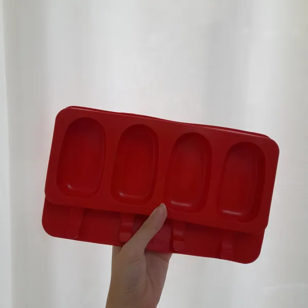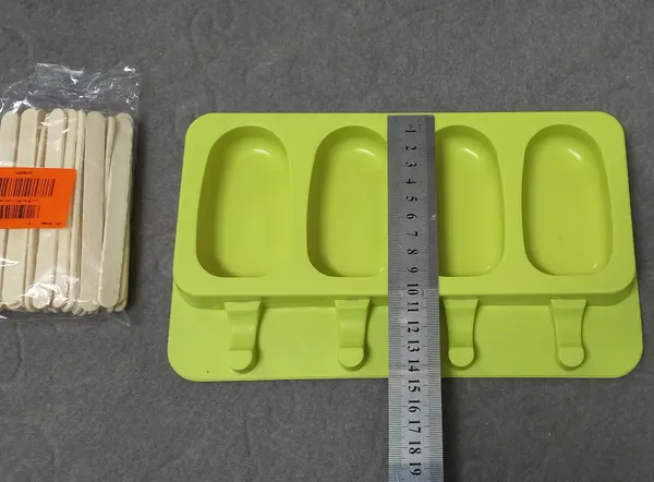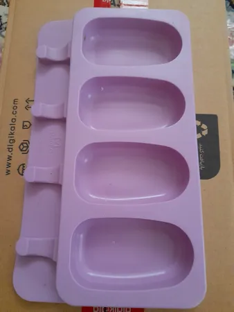🍦 قالب بستنی سیلیکونی ؛ قالب بستنی. ۴تایی. جنس سیلیکونی. نرم و انعطاف پذیر. سایز قالب ۱۵×۲۴. سایز بستنی ها ۵×۹. راضیم از خریدم. همراهش چوب بستنی هم خریدم که پاپسیکل و بستنی درست کنم در منزل