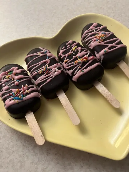 پاپسیکل ؛ من اولین باره دارم درست میکنم.رژیمی درست کردم . بیرونش شکلات تلخ ، داخلشم رایس کیک با عسل و کره بادوم زمینی زدم .خیلی خوشگل شده تازه من زیاد وارد نیستم