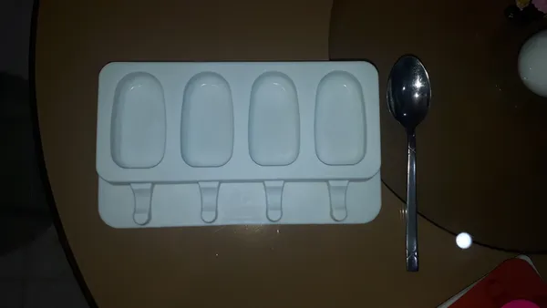 قالب بستنی ؛ حتما بخرید... من بعد از چند بار استفاده نظر میدم استفاده ازش راحته و بستنیها راحت ازشون خارج میشن،خیلی مدلهای قشنگی میتونید باهاش بستنی و پاپسیکل درست کنید فقط باید یکم خلاق باشید... در عکس ارسال شده یه قاشق برای تشخیص راحتتر سایز ونمونه کار درست شده با این قالب رو گذاشتم