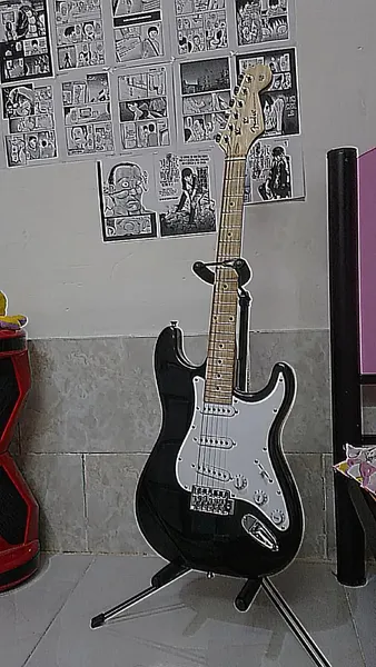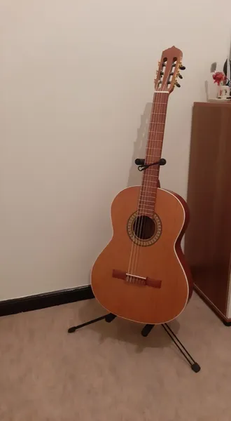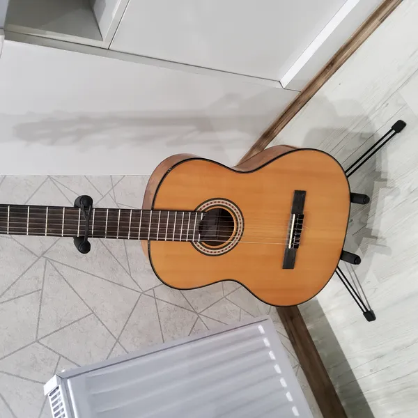 پایه گیتار ؛ پایه خوبیه ولی عااالی نیست یه جا واسه گیتارتون باشه خیلی خوبه تا همیشه ببینیدش تا تمرین کنید یکم تنظیم کردنش سخته چون پایه ها هماهنگی ندارن تا گیتار خوب روی فوم پایین بشینه