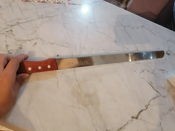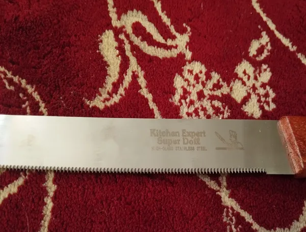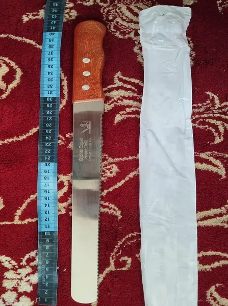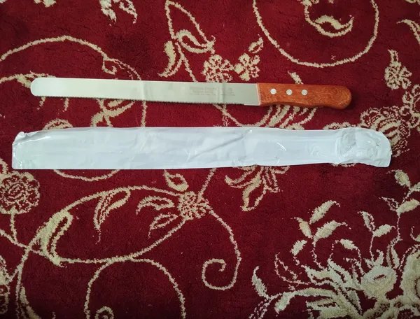 چاقوی کیک بری ؛ همه چاقوها مثل هم هستن در ظاهر ولی دندانه هاشون با هم فرق میکنن بعضی ریز ودر عین حال تیز هستند که باعث میشه کیک سریع بریده بشه ولی بعضی ها درسته دندانه های که موقع برش کیک خورد می کنه کیکو چاقوی من دندانه درشت داشت چون بازش کرده بودم متاسفانه نتونستم مرجوعش کنم