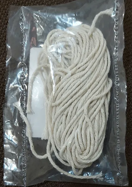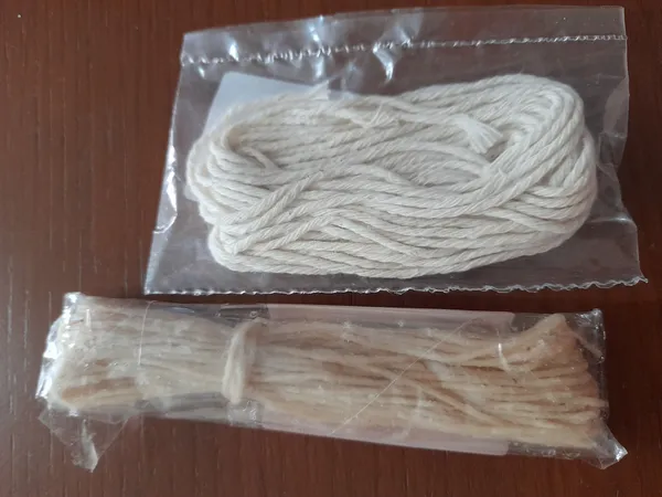 فیتیله شمع ؛ موم زده نبود متاسفانه ولی من خودم موم زدم بخوایم اینکه موم نزدن رو در نظر نگیریم برای من واقعا عالی بود فکر میکنم شانسی باشه ک یه سری از دوستان گفتند خوب نیست ولی خداییش برای من خوب بود و کلی شمع درست کردم مقدارش خیلی زیاده نسبت به قیمتش و همین خیلی عالیه من کلی شمع درست کردم اما هنوزم مونده کاش قیمتش زیاد نشه و کیفیتش هم همینطوری خوب بمونه