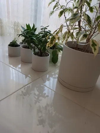 گلدان سفید ؛ من این گلدان را در سه رنگ و سایز ست کردم. جنس خیلی خوبی داره و راضی ام