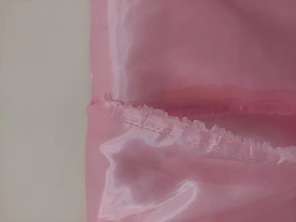دوخت بد ؛ دوخت بد و جنس بی کیفیت و زبر اصلا جنس ساتن نبود و قسمتهایی زدگی داشت رنگشم صورتی پر رنگ بود نه کم رنگ