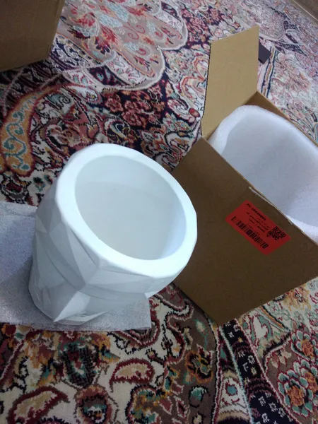 خرید این محصول را توصیه نمی کنم ؛ صورت گلدان حالت ترک خوردگی داشت به طوریکه اصلا قسمت بینی و لب گلدان بدلیل عدم دقت در تهیه و ساخت قابل جدا سازی نبود و در کل شکل صورت آدمک تمیز طراحی نشده بود و من اصلا خوشم نیومد از کیفیت پایین گلدان، عکس گلدان رو می زارم تا خودتون ببینید