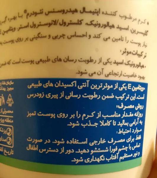 کرم مرطوب کننده ؛ خیلی سریع جذب میشه و اصلا چرب و براق نیست،ابرسانی خوبی داره برای من که پوستم خشک و حساسه مناسب بود، حجمش هم خیلی زیاد و به صرفس، هیالورونیک اسید و گلیسیرین هم داره که برای پوست های خشک و برای ابرسانی خیلی خوبن، ۳ سال هم انقضا داره