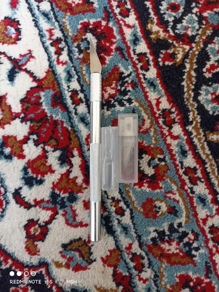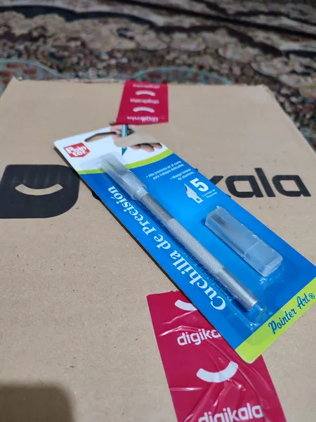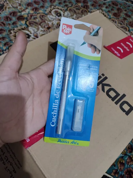 جنس خوب و عالی ؛ واقعا تیغ کاتر خوبیه برای کارهای حساس که باید تسلط زیاد داشت عالیه جای کمی میگیره و مثل خودکار میمونه چندتا عکس هم میزارم براتون