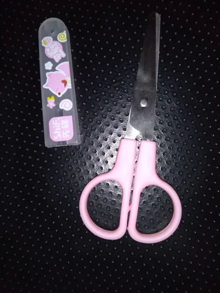 قیچی صورتی ؛ متاسفانه جنس دیگری را فرستادند که بدرد بچه ها میخوره. کوچکه و دارای درپوش و فاقد خطکش