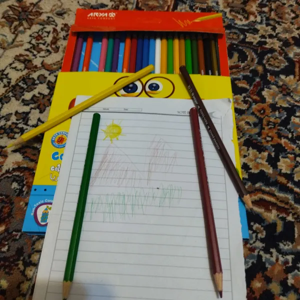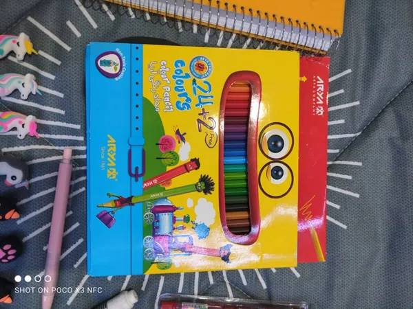 مداد رنگی ؛ من این مداد را خیلی خوشم آمد ازش مداد ها پر رنگ بود و دارای رنگ های گوناگون بود و برند آریا عالی است ممنون از فروشگاه جنت