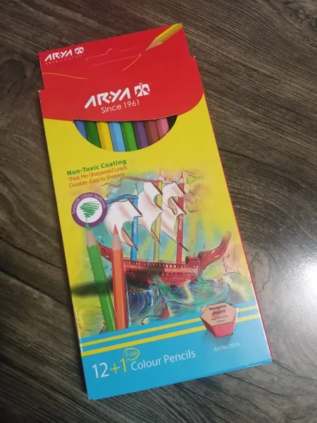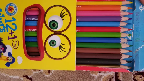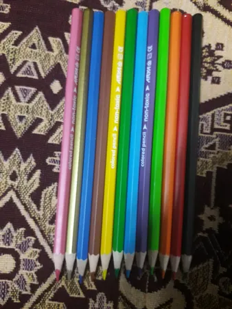 مداد رنگی با کیفیت عالی ؛ یه بسته مداد رنگی با جنس خوب،خوب تراش میشه،تمام رنگ ها توش موجوده،و یکعدد رایگان داخل جعبه هست