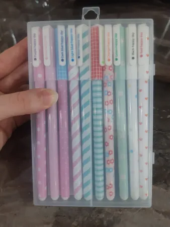 برای من عدم تطابقش با عکس مهم نیست هرچند که نباید چیزی که با عکس متفاوته بفرستن، مشکل گیر کردن و کم رنگ شدنشم به خاطر این بود که جوهر داخل لوله پیوستگی نداشت که من خودم درستش کردم و الان راحت ازش استفاده می کنم. داخل یه جعبه از جنس پلاستیک بودن که خوب و محکمه. آپدیت نظر: روان می نویسه اما گاهی بعضی رنگاش گیر میکنه مثل آبی روشن و مشکی البته شاید بعد یکی دو سال طبیعی باشه احتمالاً جوهرشون رو به فاسد شدنه😅 در کل خوبه بد نیس. عکس اونایی که برام مونده رو گذاشتم. در کل برای یه بار خریدنش بد نبود اما دوباره نمیخرم