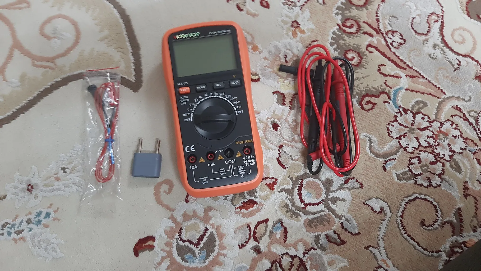 مولتی متر vc۹۷ ؛ نسبت به بیرون با قیمت مناسب تری تونستم تهیه کنم. مارک مولتی متر هلوگرامی است و زیبا است. من هنوز زیاد باهاش کار نکردم و نمیتونم نظر تخصصی بدم