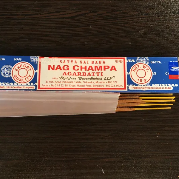 گرم خشک آروماتیک تند با رایحه ی چوبی رزینی اسپایسی گلی. ابعاد چوبی و رگه های تند (بسیار کم شبیه به سوختن چوب های خزه دارِ باران خورده) اصلی ترین رایحه ی ناگ چامپا رو تشکیل میدن. در هر بسته ۱۴ شاخه ی بیست سانتی وجود داره و هر شاخه در مدت زمان سی دقیقه می سوزه و برای فضاهای ۱۵ الی ۵۰ متر مناسبه