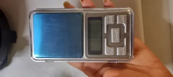 ترازو کوچک ؛ اندازه کوچیکی داره. قبل روشن کردن یه ظرف روش قرار بگیره، اون ظرف رو جز وزن حساب نمیکنه. یه سری گلوله های فلزی کوچیک داخلشه که اگه تکون بخوره میریزه داخلش