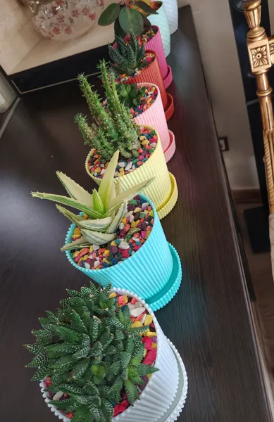 فوق العاده کیوت و نمکی و خوشگل ؛ حتمن بخرین برای آپارتمان و داخل سالن مخصوصن خیلی خوشگل و خوشرنگن روحیه میدن به آدم. جنسشم محکم و مرغوبه. زیر گلدونی و گلدون ها همگی سالم بودن و از خریدم ب شدت راضی ام 😎 عکسشم گذاشتم براتون