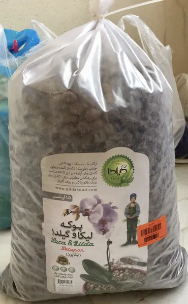 پوکه لیکا ؛ از پوکه لیکا به عنوان خاک سبک استفاده میشه همچنین رطوبت خاک رو حفظ میکنه، من خاک برگ گیلدا رو هم سفارش دادم که هر دوتاش کیفیتشون عالی بودن