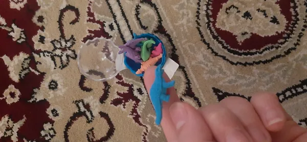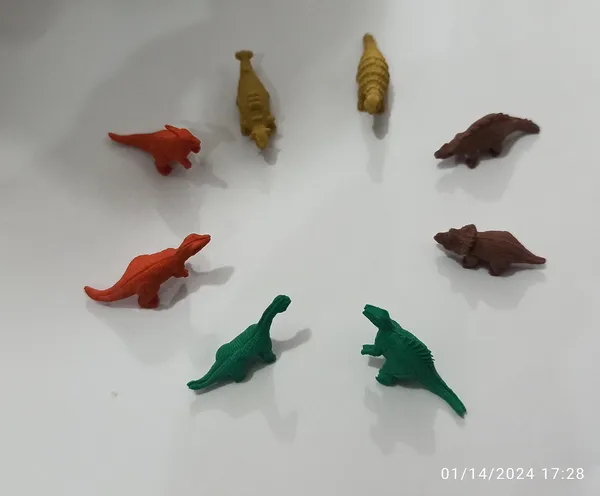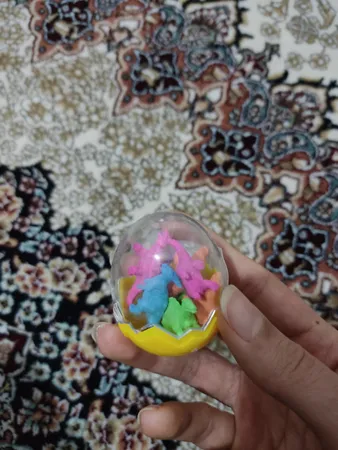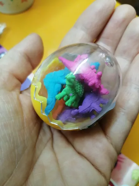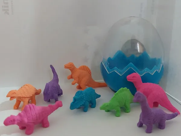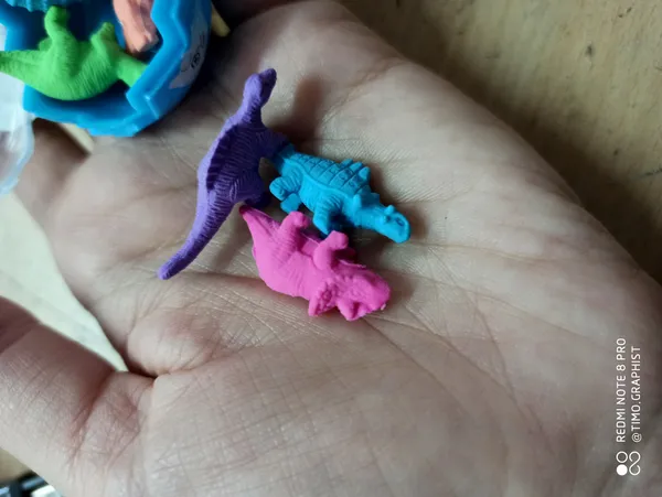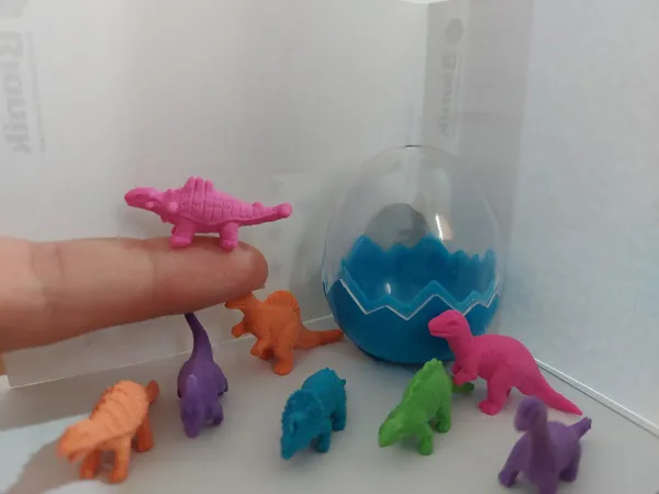 بامزه و کوچولو ؛ ظرفی که 8 تا پاک کن دایناسوری اندازه تخم مرغ حالا خودتون حساب کنیدپاک کن ها چه قدر هستند من که خوشم اومد