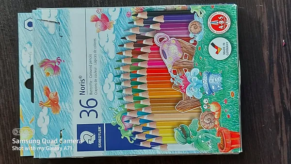 مداد رنگی نوریس استدلر ؛ استدلرهمیشه بی نظیر بوده.پختگی رنگها و طیف رنگی که داره میشه حتی باهاش نقاشیهای خیلی حرفه ای و چهره انجام داد.نوک نرم و روان. مدادرنگی تو بسته بندی خیلی زیبا و عالی به دستم رسید.بدون هیچ ضربه ای.خیلی راضی بودم از خرید