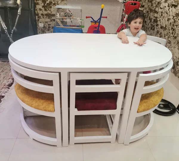میز صندلی کم جا ؛ خیلی زیبا و تمیز و عالی. جنس پارچه صندلی ها عالی و زیبا و چ رنگهای روشن و قشنگی. زرشکی و خردلی. خدا قوت. ممنونم